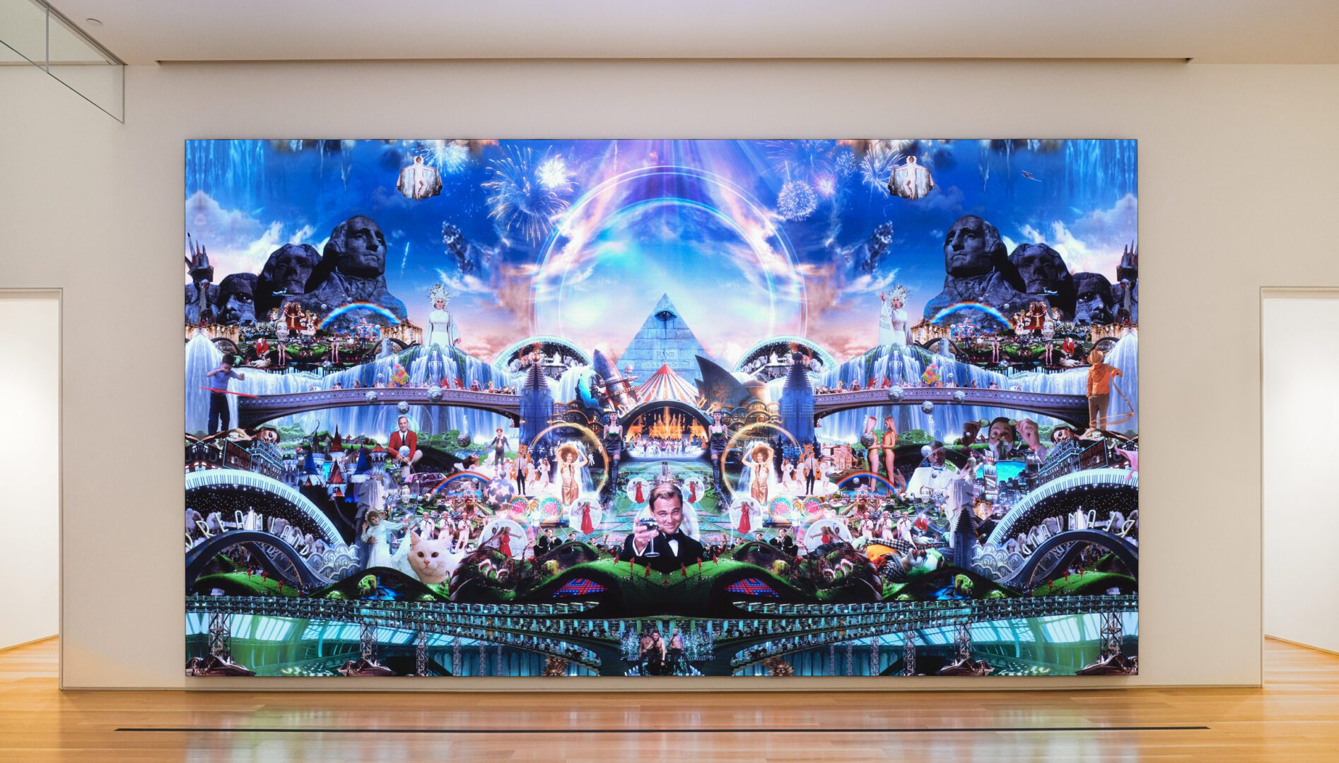 In 2024, his AI-generated piece Approximations of Utopia became the first of its kind to be featured in Times Square’s Midnight Moment arts series, presented across 95 digital screens. His large-scale video collage King Size (2023) was unveiled in 16K resolution as part of the opening program at the Sphere in Las Vegas. Brambilla’s Heaven’s Gate (2021) has been widely exhibited, including solo presentations at the Pérez Art Museum Miami, PHI Centre in Montreal, Max Ernst Museum (Brühl), and as the centerpiece of his 2025 solo show Altered States at Haus, Venice, curated by Jérôme Sans.